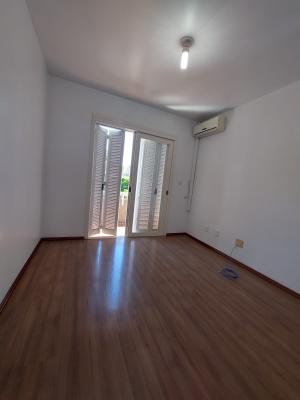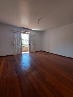 Apartamento central para locação, com três dormitórios (um suíte), dois banheiros, sala de jantar, sala de estar, cozinha, área de serviço, despensa e uma vaga de garagem.